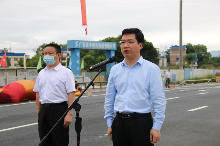 4月29日,永康路橋舉行通車儀式。副市長蔣曉軍,市交通運(yùn)輸局、國資委、城市管理局、賀州市東融新區(qū)管委、城投集團(tuán)等有關(guān)領(lǐng)導(dǎo)參加通車儀式。副市長蔣曉軍宣布通車。